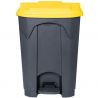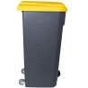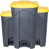 Le couvercle s'ouvre facilement, permettant une élimination des déchets sans effort. Le corps gris foncé associé aux couleurs vives de la pédale et du couvercle donne à ces poubelles une esthétique professionnelle, idéale pour tout environnement industriel.
