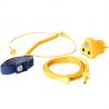 Le fil de mise à la terre du poste constitue l’élément central du système. Long de quatre virgule cinq mètres, il est doté d’un goujon mâle et d’un goujon femelle de dix millimètres, ainsi que d’une douille banane de quatre millimètres permettant un raccordement rapide et sécurisé des dispositifs ESD existants. Cette architecture facilite la connexion de plusieurs accessoires tout en maintenant un point de terre unique, condition essentielle pour éviter les écarts de potentiel au poste de travail.