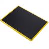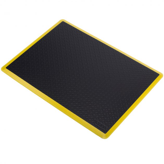 La bordure jaune haute visibilité, intégrée en série, permet de délimiter clairement la zone de travail et améliore la prévention des accidents. Ce contraste visuel est particulièrement pertinent dans les magasins, ateliers et espaces logistiques où la coexistence de flux piétons et d’activités techniques requiert une signalisation renforcée. Les formats disponibles, 60 cm x 90 cm et 90 cm x 120 cm, permettent d’équiper aussi bien les postes individuels que les espaces plus larges nécessitant une surface de confort accrue.