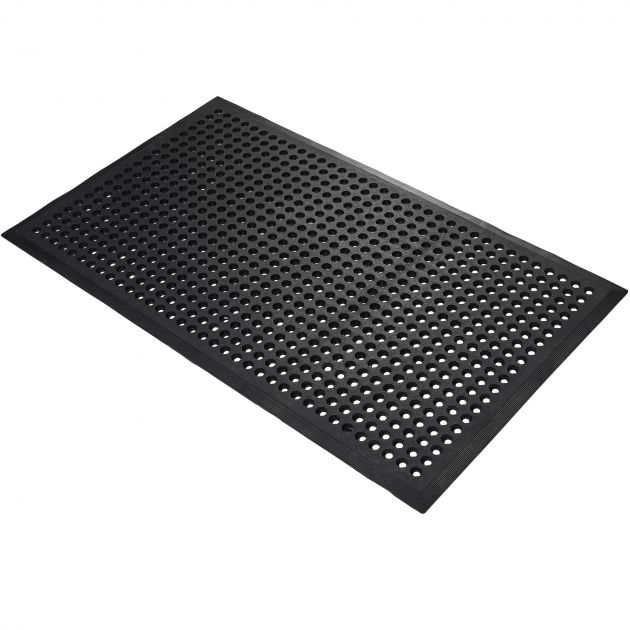 Le tapis antidérapant Worksafe est conçu pour renforcer la sécurité des zones de travail soumises à des projections de liquides, des résidus de production ou des sols gras. Sa structure en caoutchouc perforé assure une évacuation rapide des liquides renversés, ce qui limite l’accumulation de substances pouvant provoquer des glissades. Cette conception en relief améliore la stabilité des opérateurs positionnés debout de manière prolongée et contribue à réduire les risques de chute dans les environnements où les déplacements sont fréquents.