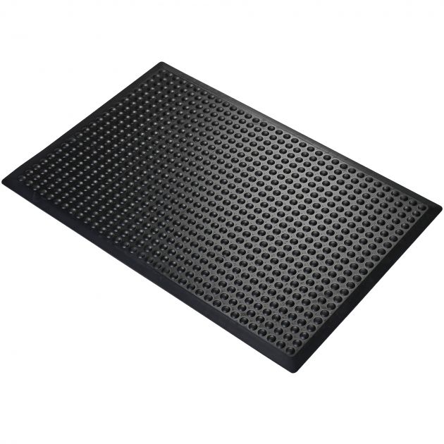 Le tapis anti fatigue à surface à bulles Bubblemat est conçu pour améliorer le confort des postes de travail professionnels en station debout prolongée, dans des environnements essentiellement secs. Ce revêtement repose sur une structure en caoutchouc naturel moulé par compression, combinant amorti sous le pied et stimulation mécanique de la voûte plantaire. La surface en relief à motifs bulles crée un effet dynamique lors de la marche ou des micro-mouvements, favorisant l’activation de la circulation sanguine au niveau des pieds et des jambes, sans perturber la stabilité du poste.