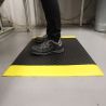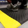 La finition de surface à motif pastillé constitue un élément distinctif de cette version. Elle améliore l’adhérence au sol et sous le pied, réduisant les risques de glissade dans les zones de travail sèches. Ce relief discret assure une bonne accroche sans gêner les déplacements ni compliquer l’entretien. Les déclinaisons Noir/Jaune intègrent une bordure de sécurité haute visibilité de 100 mm, permettant de matérialiser clairement les zones de stationnement et de renforcer la lisibilité des cheminements à proximité des machines ou équipements fixes, dans une logique de prévention des risques professionnels.