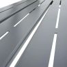 L’assise et le dossier sont réalisés en tôle acier pliée épaisseur 2 mm, finition peinte sur galvanisation, disponibles en version monochrome ou bicolore selon les coloris sélectionnés. Le modèle est décliné avec ou sans accoudoirs, permettant d’ajuster la configuration selon les contraintes d’accessibilité, de régulation d’assise ou de confort. Le poids unitaire est de 39 kg en version sans accoudoir et 42 kg avec accoudoirs, apportant une masse suffisante pour limiter tout déplacement après installation. La fixation s’effectue sur platines avec tiges d’ancrage fournies, simplifiant la mise en œuvre sur dalle béton ou massif béton.
